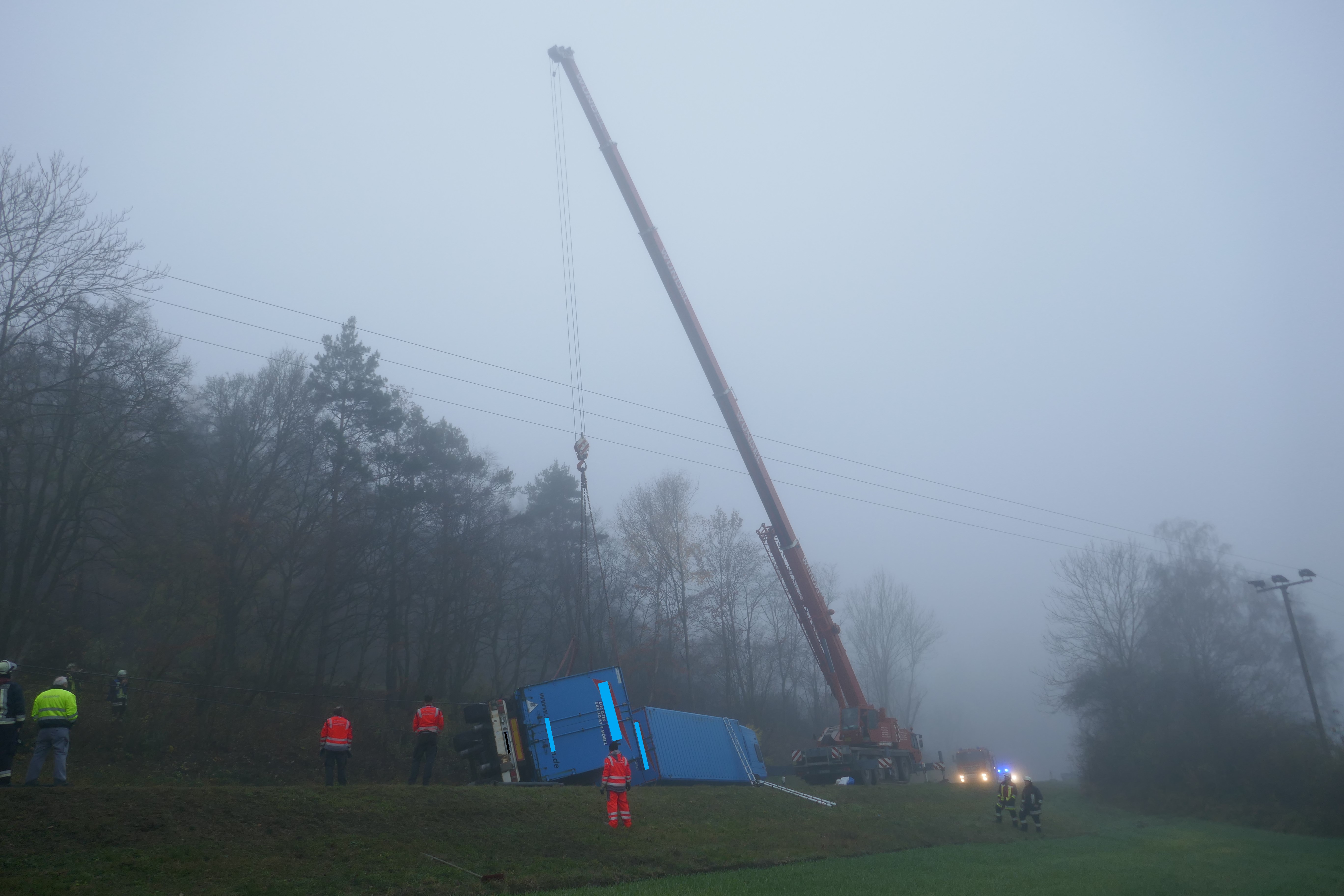 Lkw stürzt Böschung hinab und verursacht Stromausfall