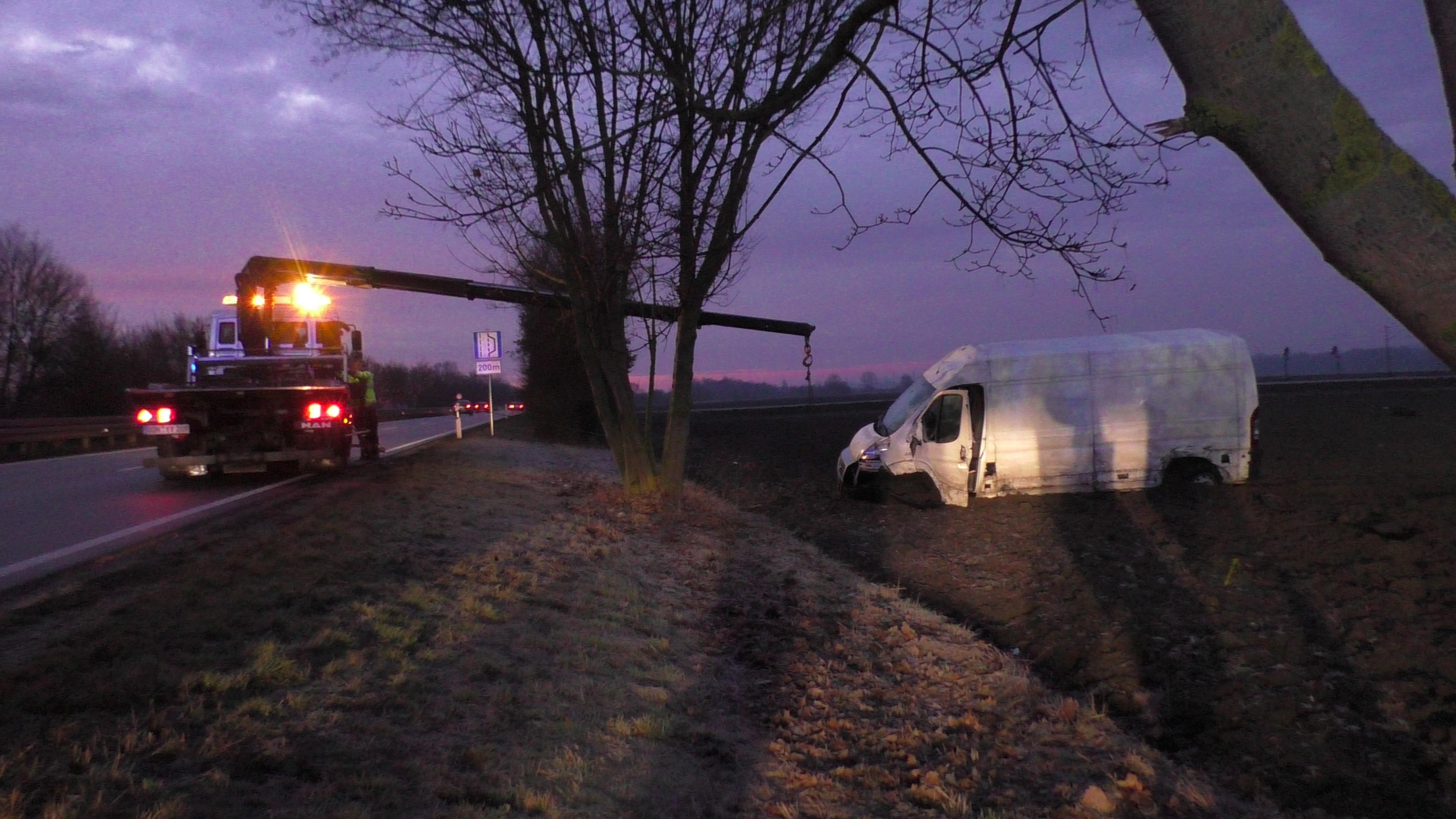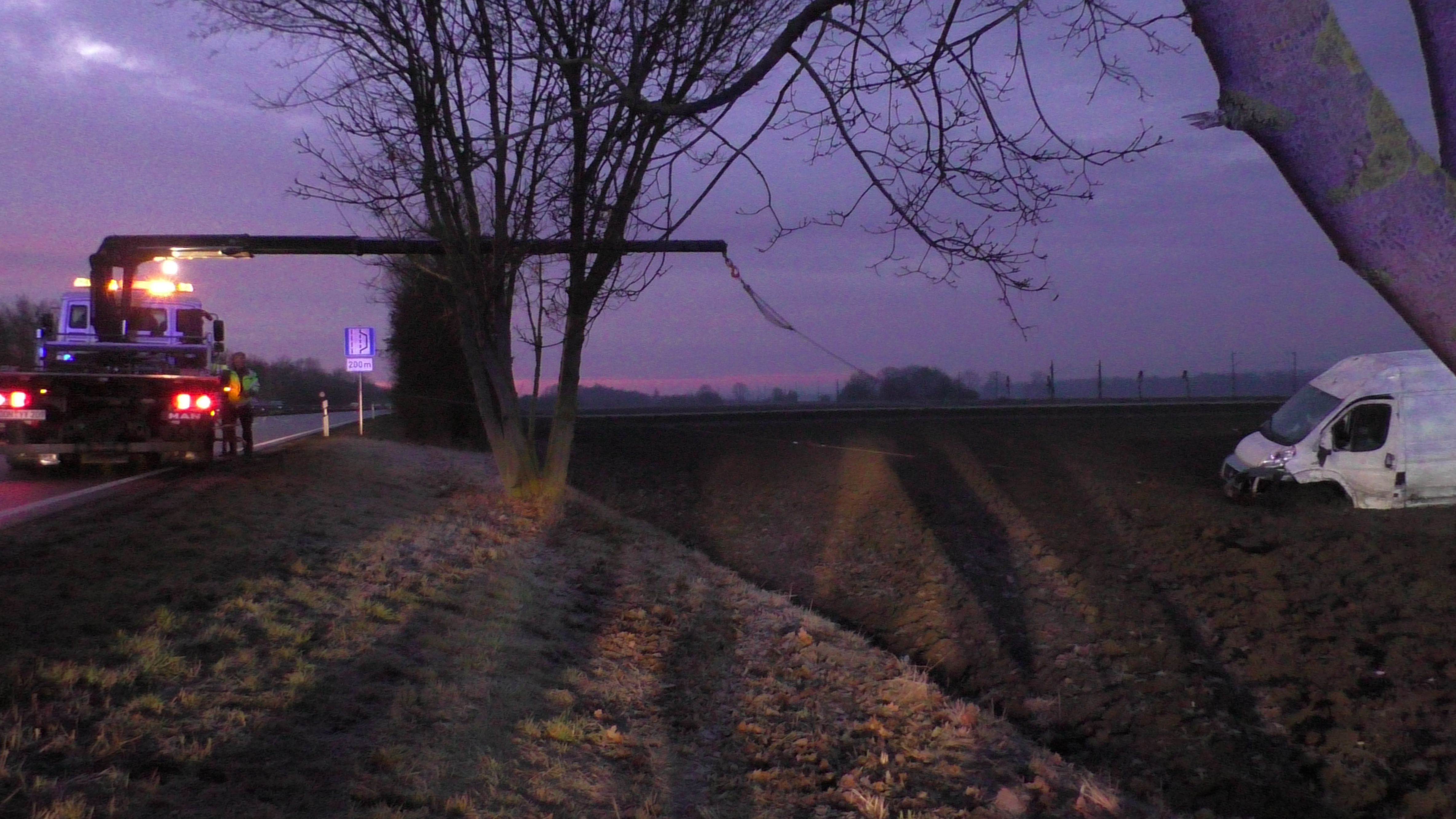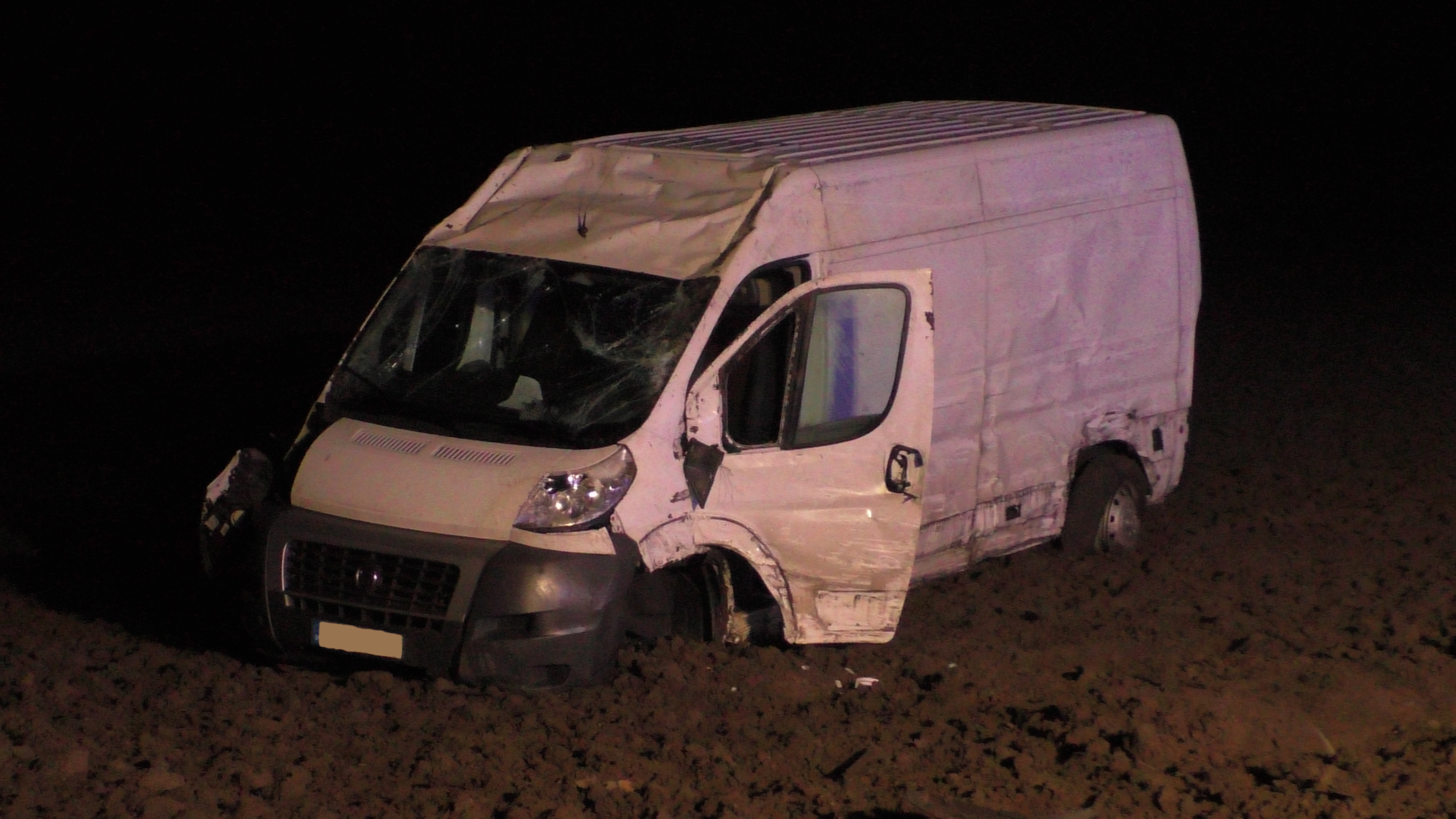Kleintransporter gerät ins schleudern und überschlägt sich im Acker
