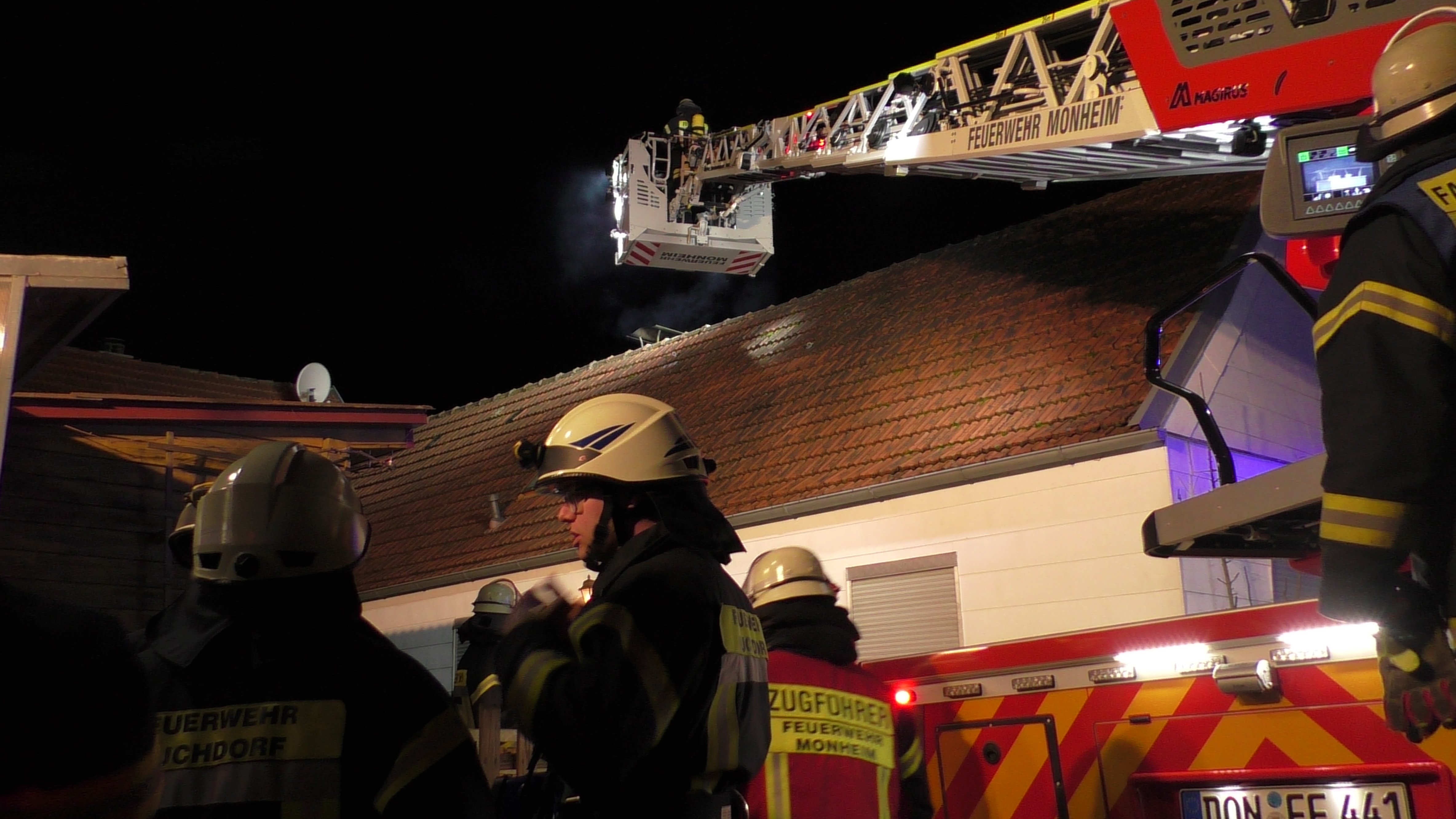 Durch den Notruf eines aufmerksamen Zeugen wurde der integrierten Leitstelle am 09.01.2020, um 19.59 Uhr, ein Dachstuhlbrand in einem freistehenden Einfamilienhaus in der Dumbergergasse mitgeteilt. Die Freiwilligen Feuerwehren Monheim, Buchdorf und Hafenreut rückten daraufhin mit 70 Einsatzkräften und zahlreichem Gerät aus. Glücklicherweise stellte sich am Brandort heraus, dass es sich lediglich um einen Kaminbrand handelte. Dieser verlief ersten Erkenntnissen zufolge ohne bleibende Sachschäden. Verletzt wurde ebenfalls niemand.
